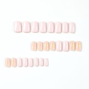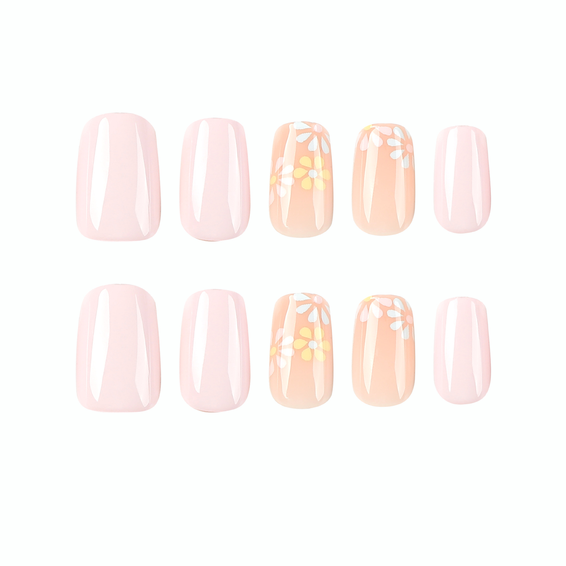 / 穿戴式指甲贴粉色甲片搭配三色花朵美甲甲片穿戴甲短款甲片假指甲