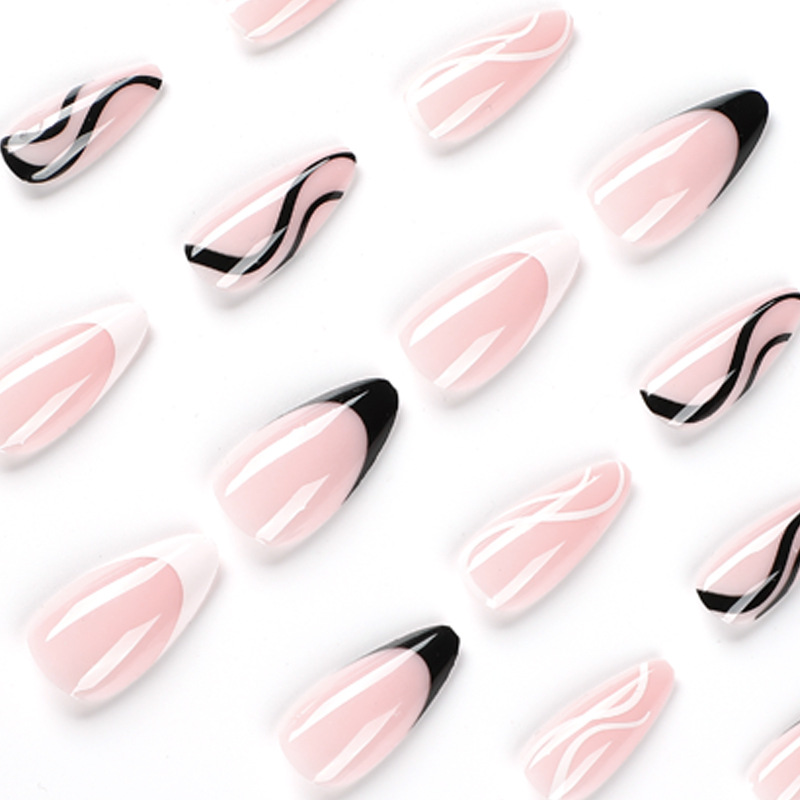 穿戴甲中长款黑白鸳鸯法式边简约波浪穿戴甲甲片批发穿戴美甲片