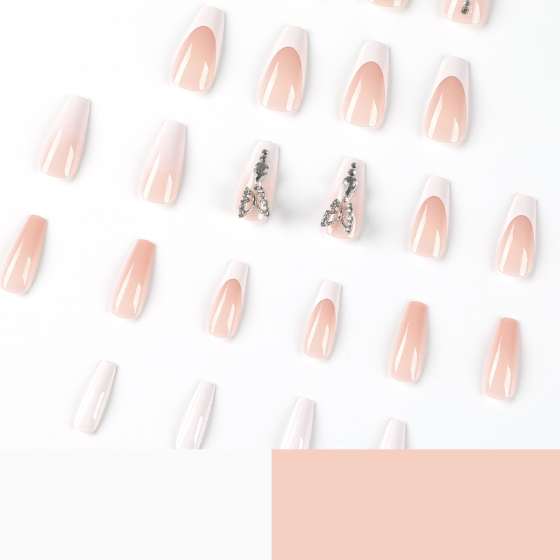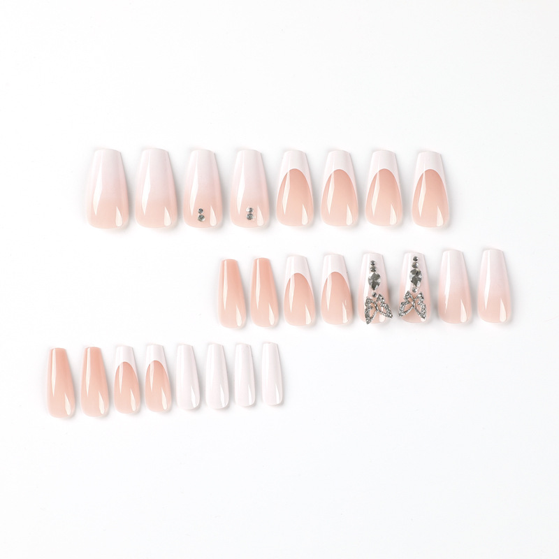 / 穿戴甲中长款蝴蝶立体水钻法式白边晕染高级穿戴甲美甲甲片批发