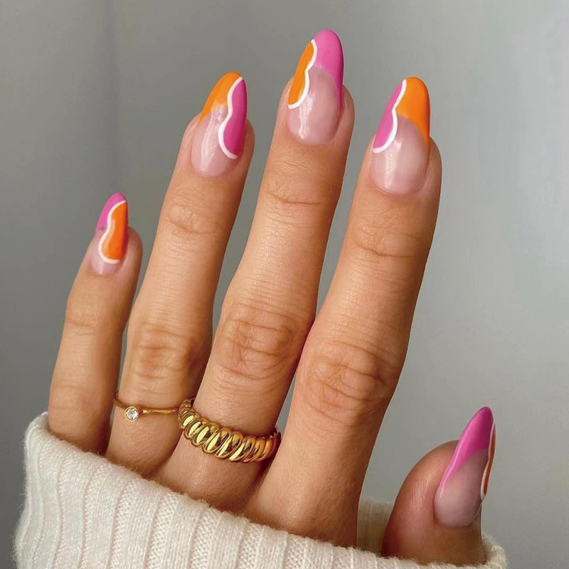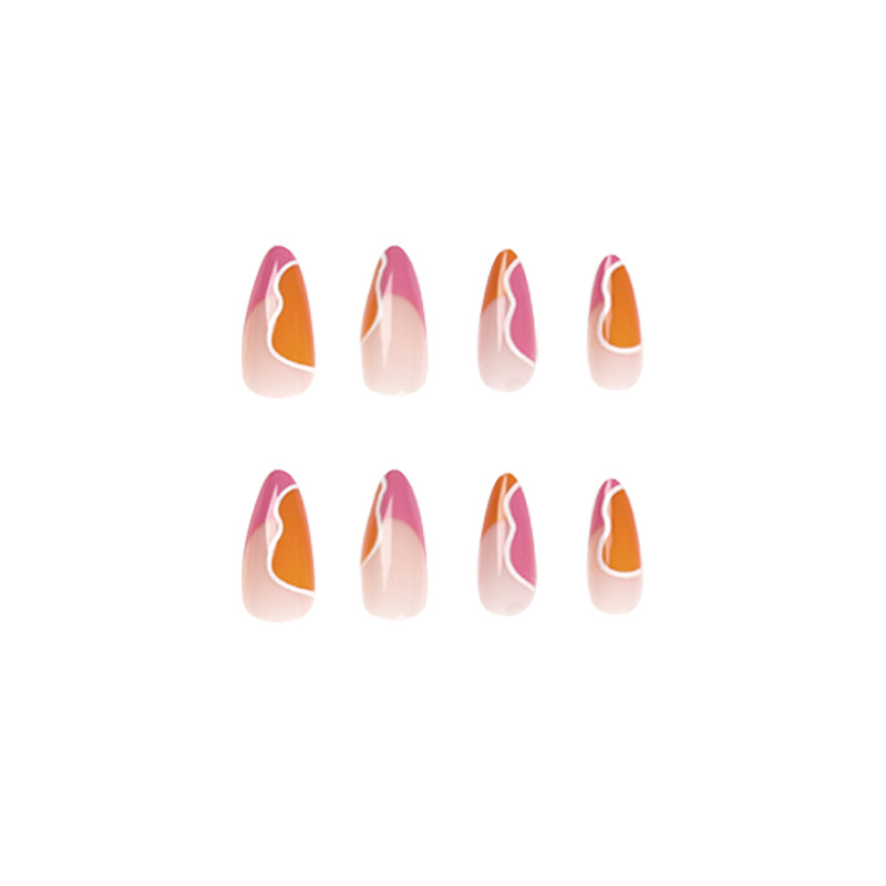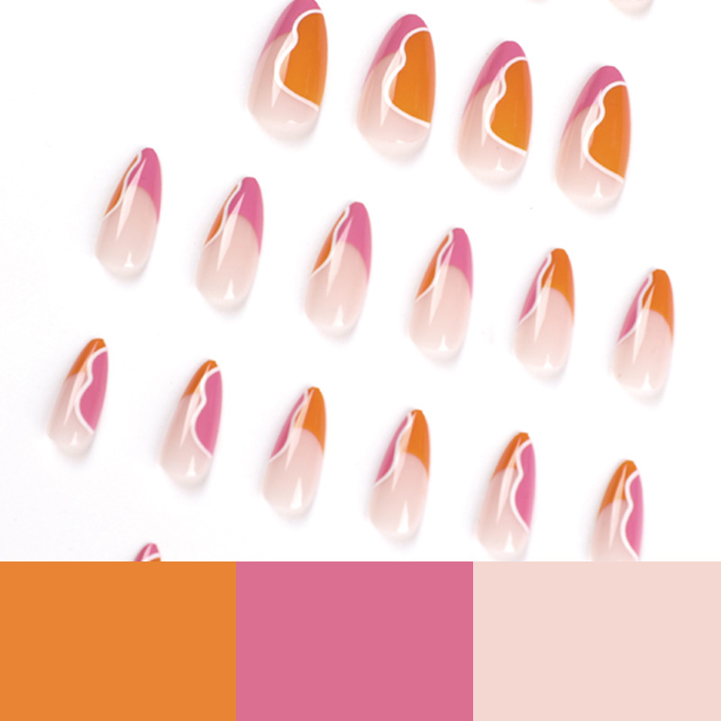 穿戴甲甲片批发简约法式粉橙撞色白色波浪拼接甲片 穿戴甲假指甲