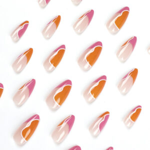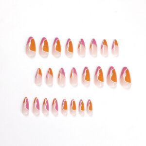 / 穿戴甲甲片批发简约法式粉橙撞色白色波浪拼接甲片 穿戴甲假指甲