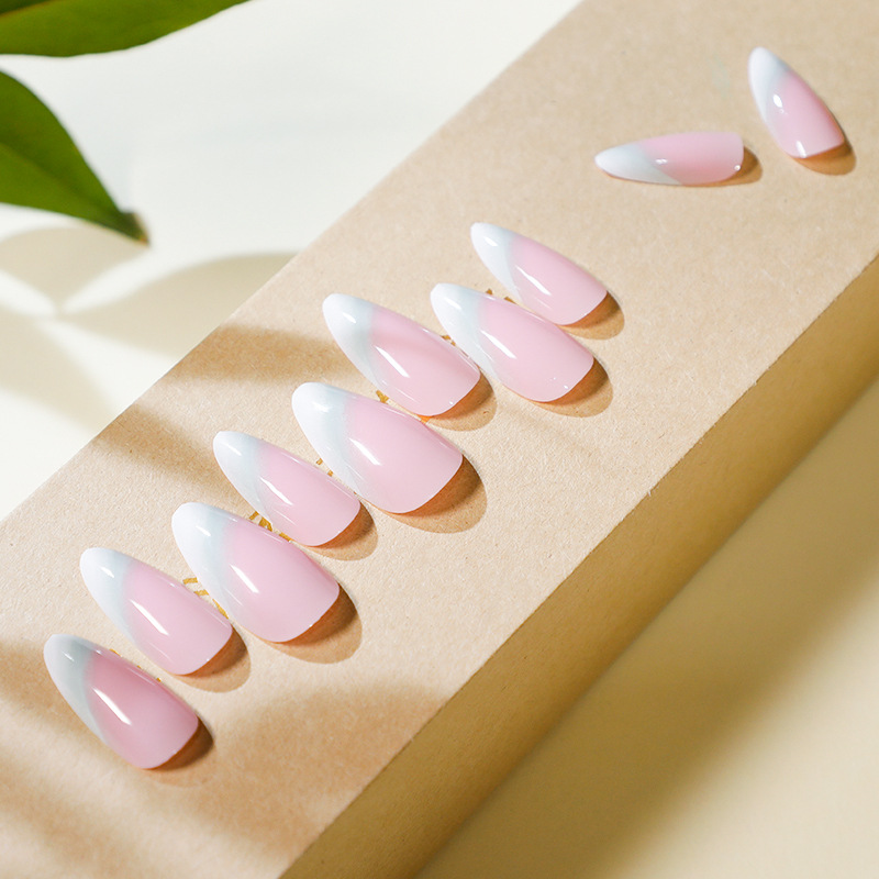 / 穿戴甲法式美甲贴片浅绿晕染甲片false nails 外贸美甲穿戴甲批发