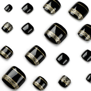 / 穿戴甲批发黑色金粉脚甲片成品美甲片指甲贴片false nail跨境直供