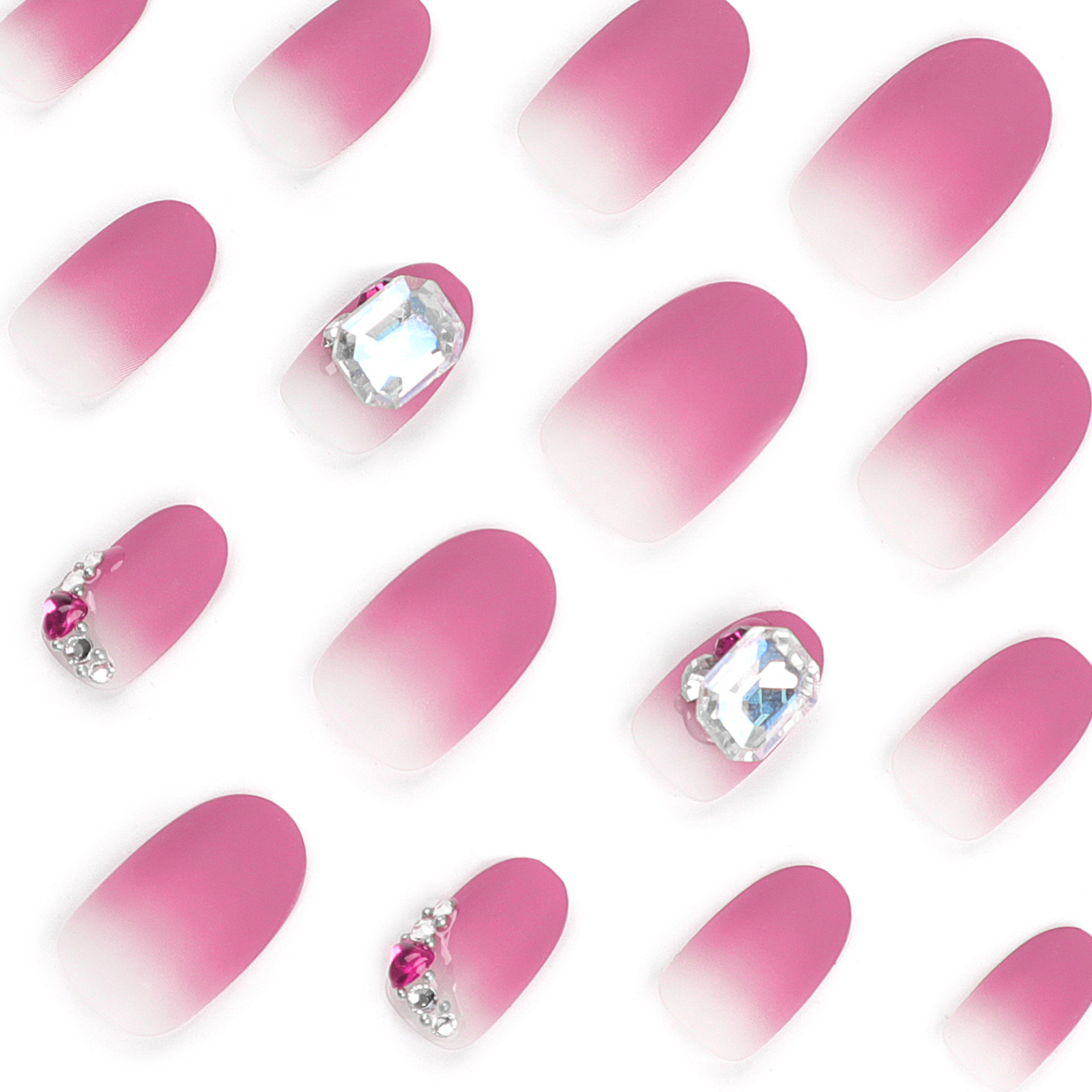 小红书穿戴甲假指甲短款胭脂红美甲指甲贴片甲片镶钻穿戴式指甲片