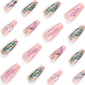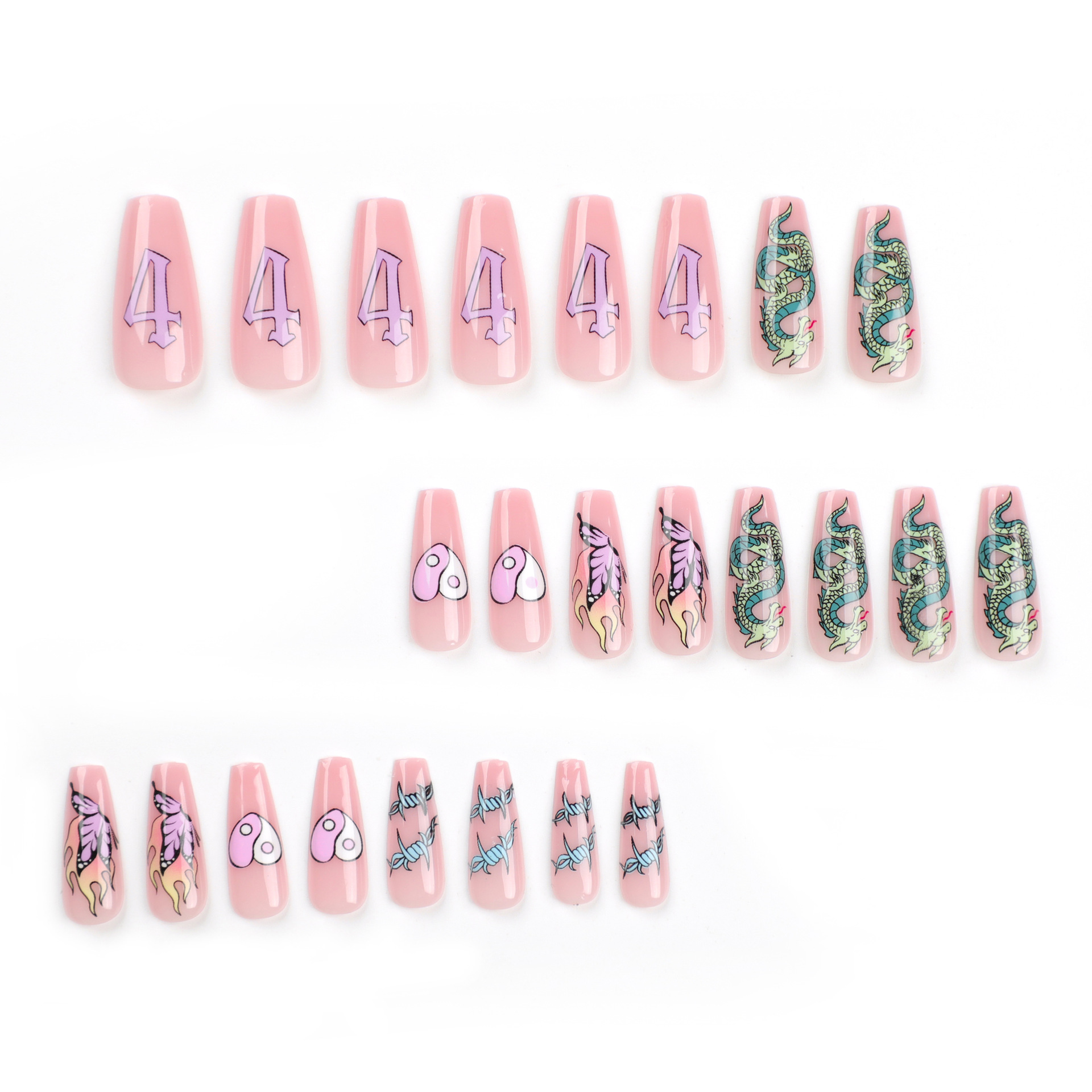 中国风美甲穿戴甲甲片粉色穿戴式指甲贴假指甲法式芭蕾甲指甲片 수량