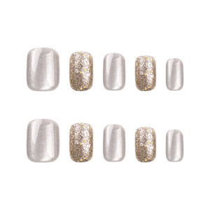 이우 착용 네일 짧은 솔리드 실버 캣츠 아이 네일 아트 조각 수석 샴페인 컬러 버스트 플래시 네일 아트 조각 가짜 손톱 도매