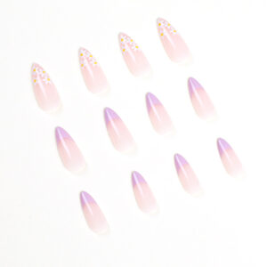 假指甲美甲贴片法式美甲碎花美甲浅紫显白指甲贴片press on nails 수량