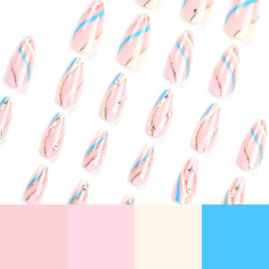 彩色条纹穿戴甲甲片金色闪粉波纹美甲点钻杏仁甲假指甲false nail 수량