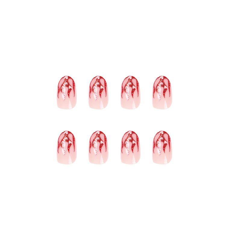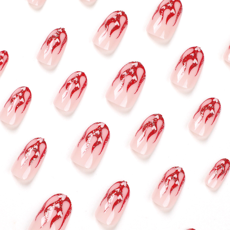 指甲贴片批发红色火焰闪粉穿戴式美甲白色爱心穿戴美甲高级 nails 수량