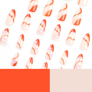 法式橙色显白穿戴甲人鱼珠美甲简约短款杏仁甲穿戴式甲片假指甲 수량