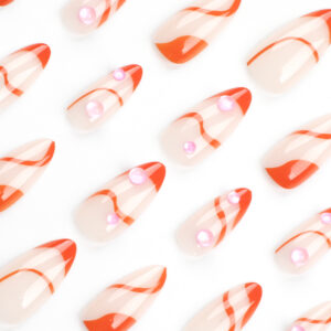 / 法式橙色显白穿戴甲人鱼珠美甲简约短款杏仁甲穿戴式甲片假指甲