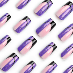 / 法式欧美黑紫拼接穿戴甲中长款方形甲片秋冬显白高冷指甲片假指甲