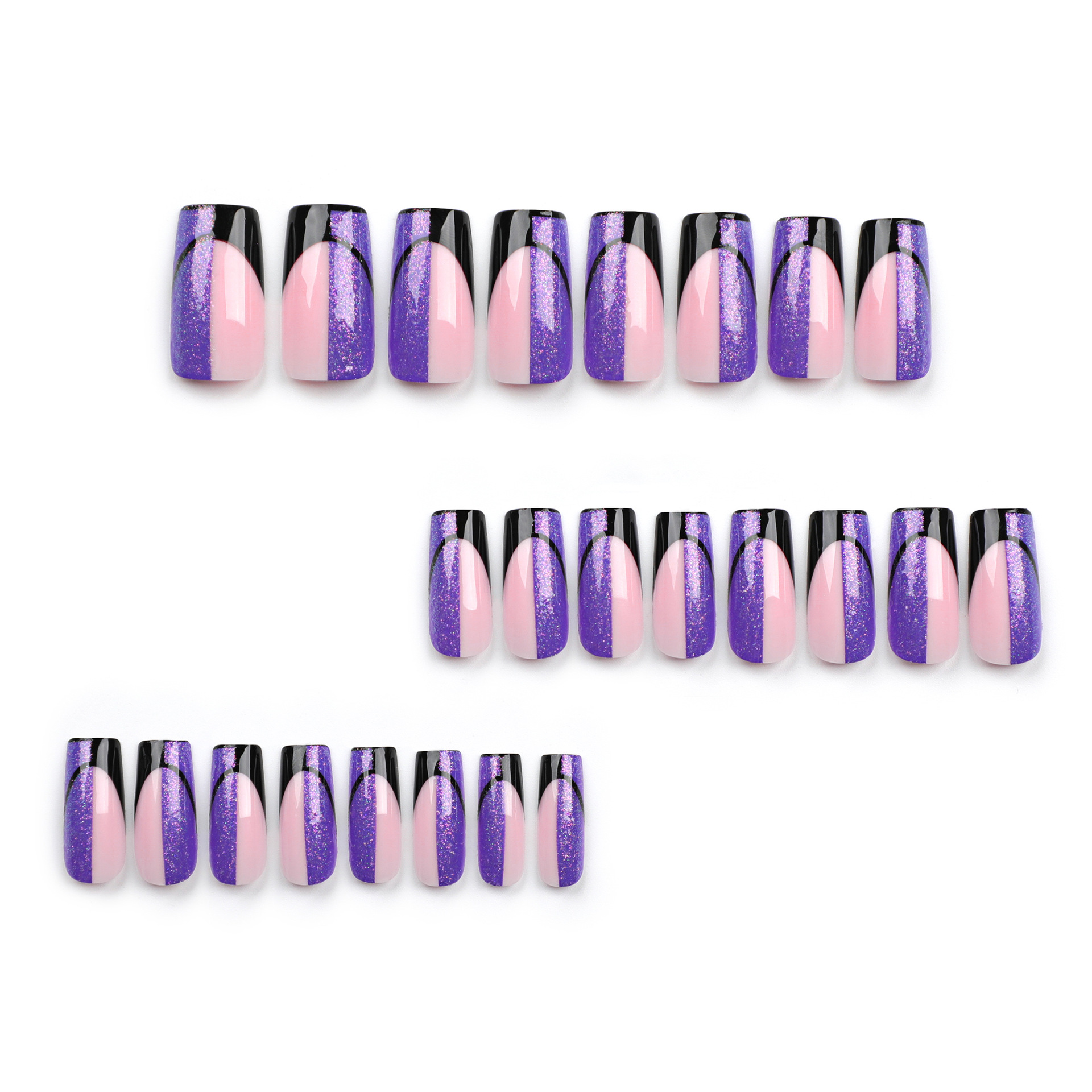 法式欧美黑紫拼接穿戴甲中长款方形甲片秋冬显白高冷指甲片假指甲 수량