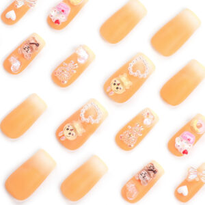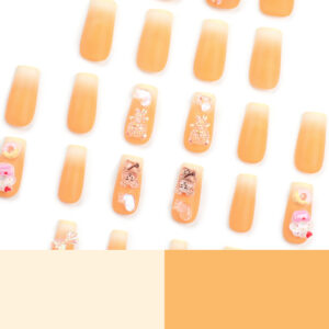 / 法式渐变穿戴甲爱心蝴蝶结美甲片卡通兔子小熊甜甜圈暖色显白甲片