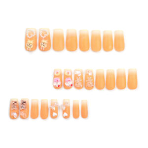 法式渐变穿戴甲爱心蝴蝶结美甲片卡通兔子小熊甜甜圈暖色显白甲片 수량