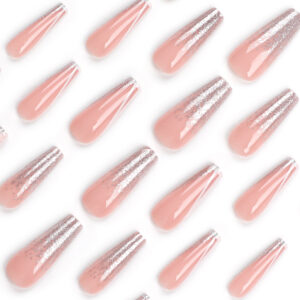 / 法式白边长款芭蕾穿戴甲银色闪粉美甲跨境爆款秋冬假指甲甲片成品