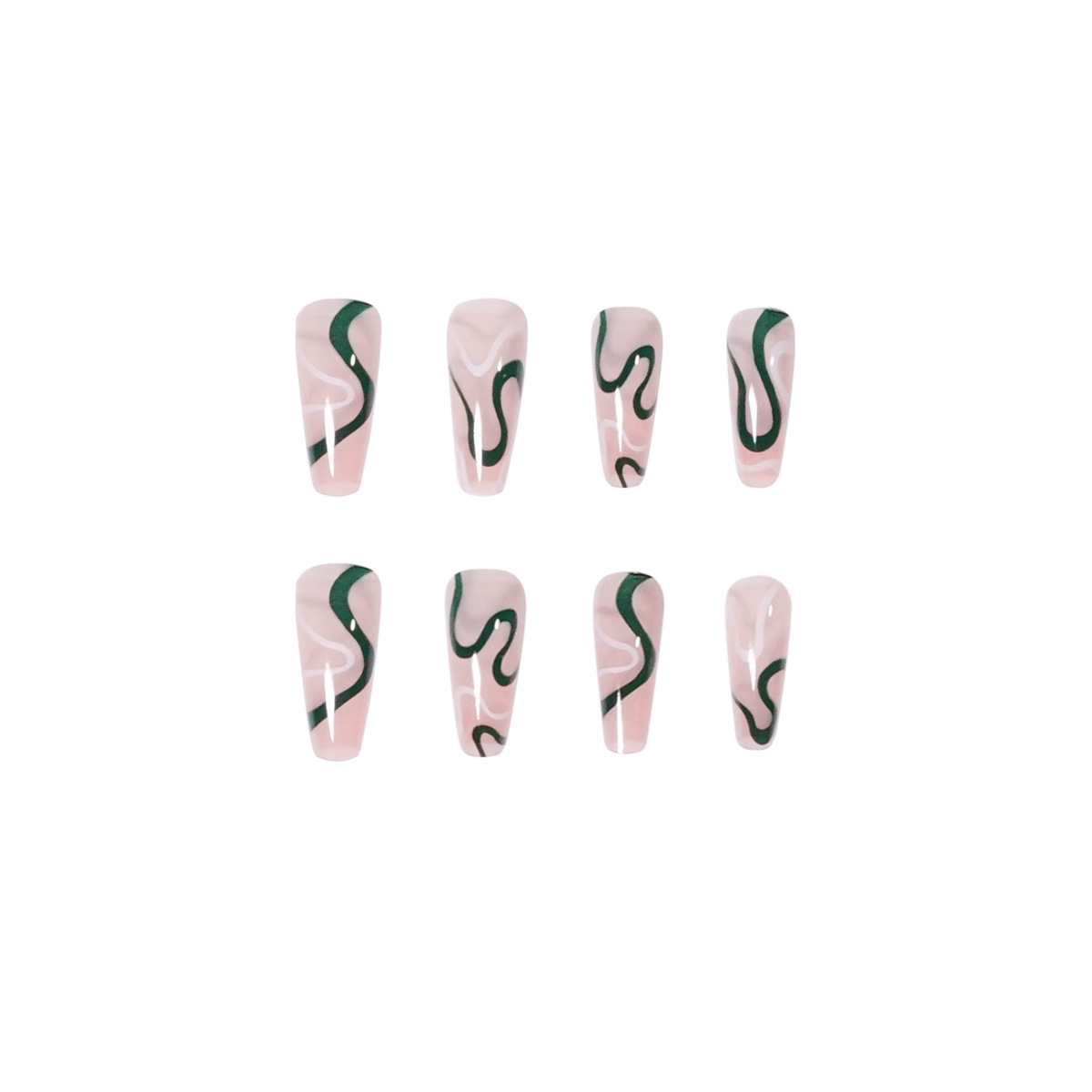 波浪系列墨绿撞色Press on nail假指甲美甲贴片指甲贴片可拆甲片