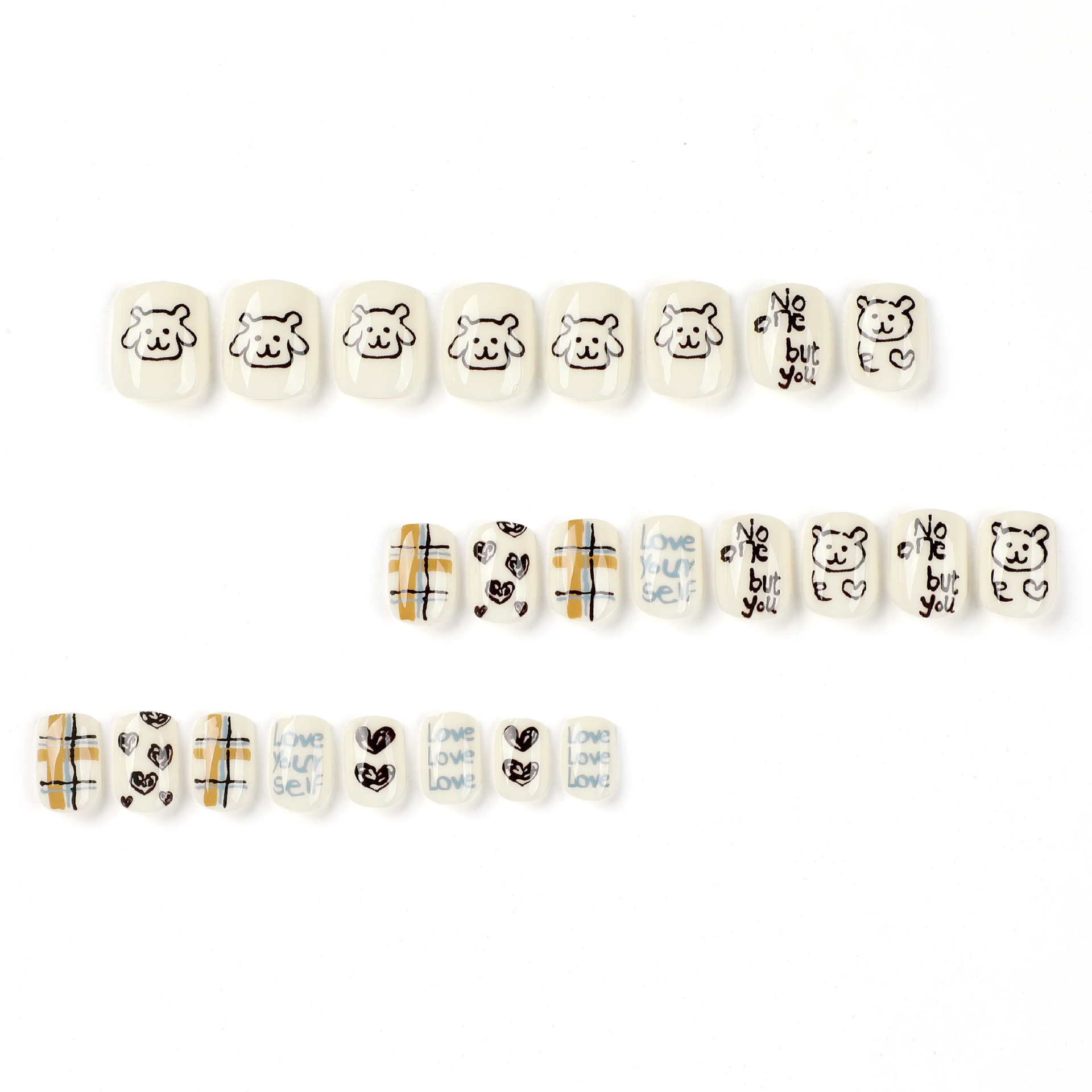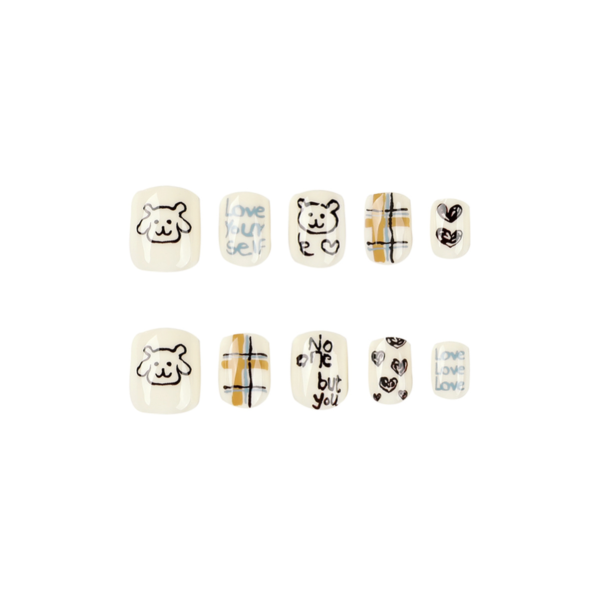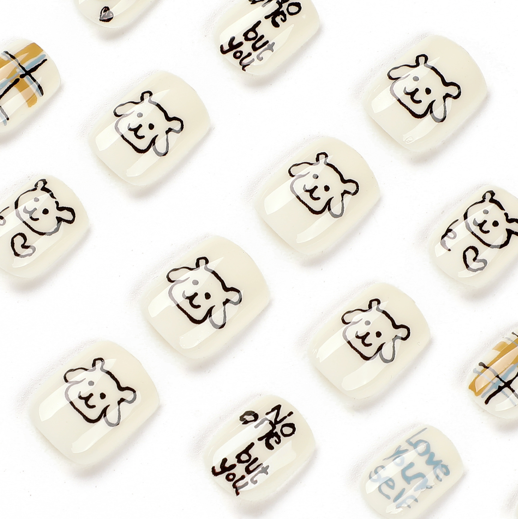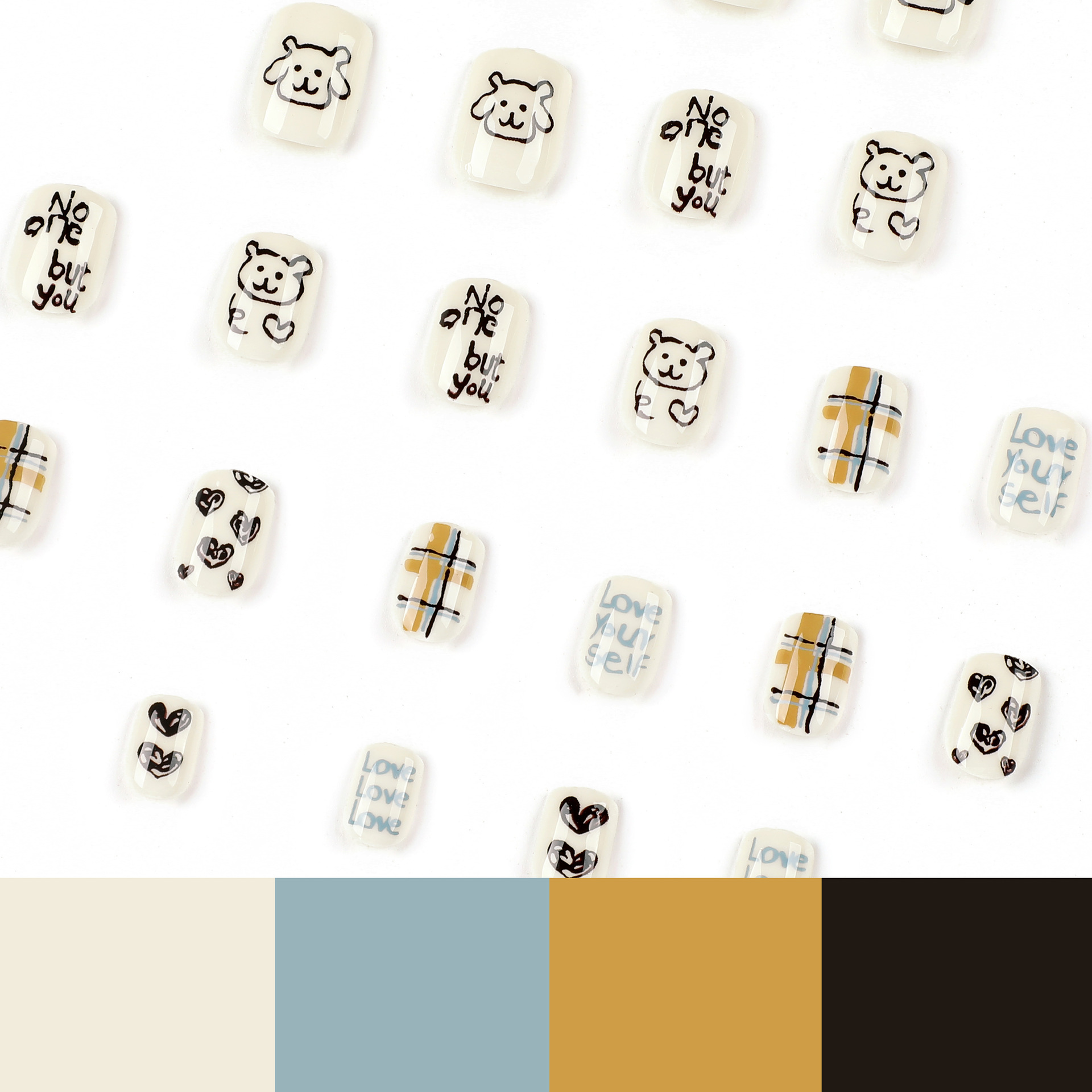 / 穿戴式甲片可爱卡通小熊假指甲黑色涂鸦爱心美甲贴片线条蓝黑字母