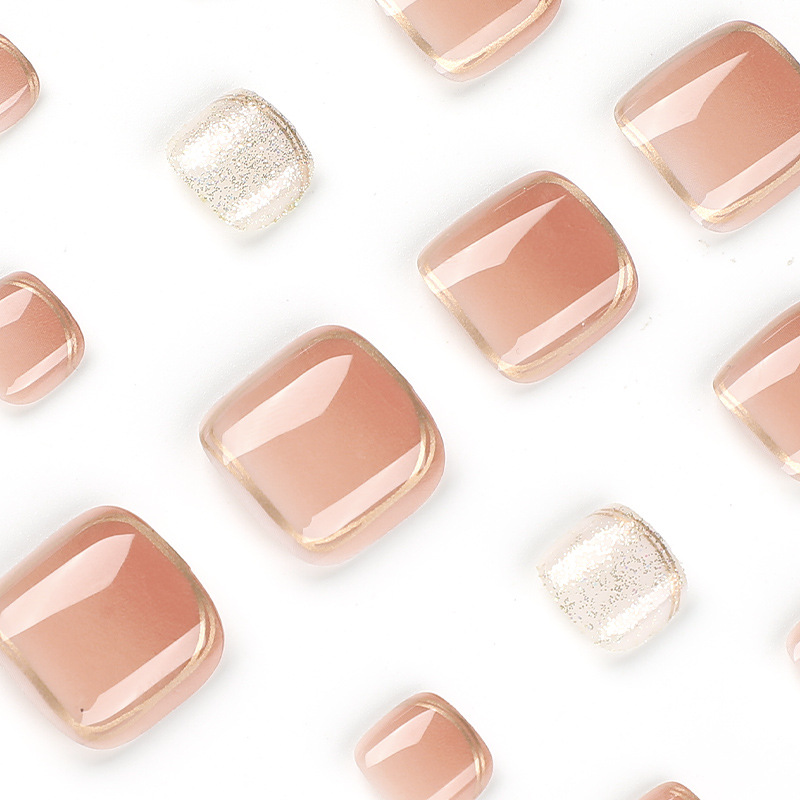 네일 도매 누드 골드 엣지 글리터 풋 네일 네일 도매 유럽과 미국 착용 네일 네일 네일 가짜 조각 네일 패치 착용