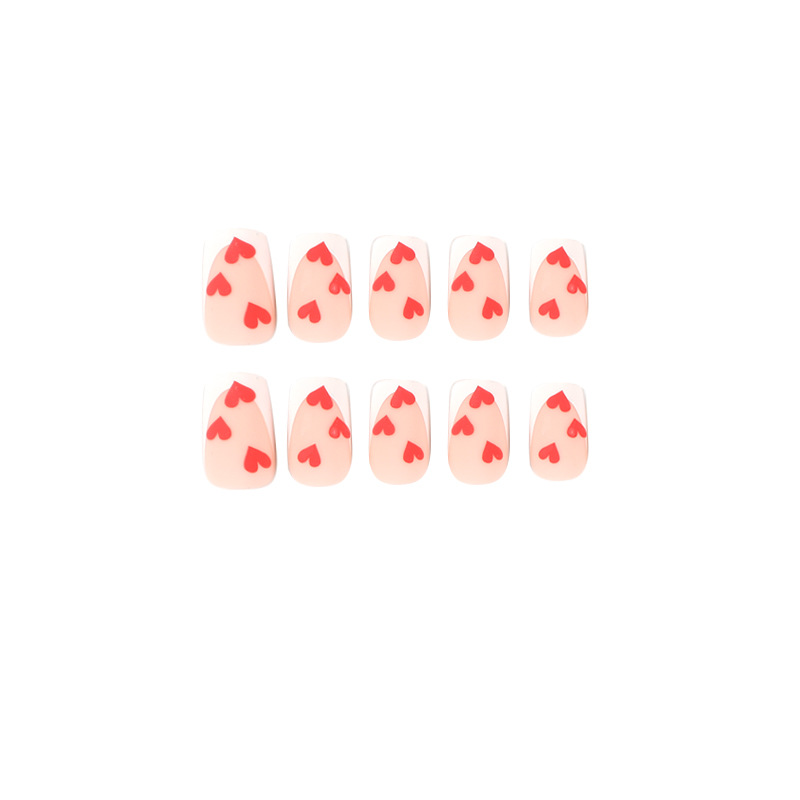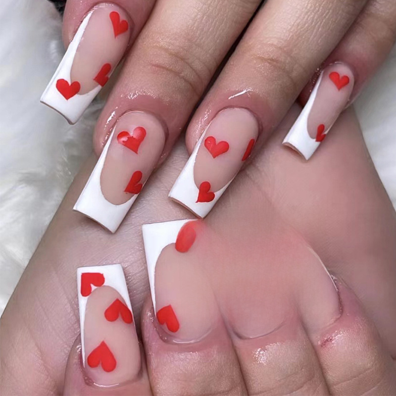 穿戴甲片情人节美甲磨砂法式白边红色爱心美甲穿戴甲批发成品nail 수량