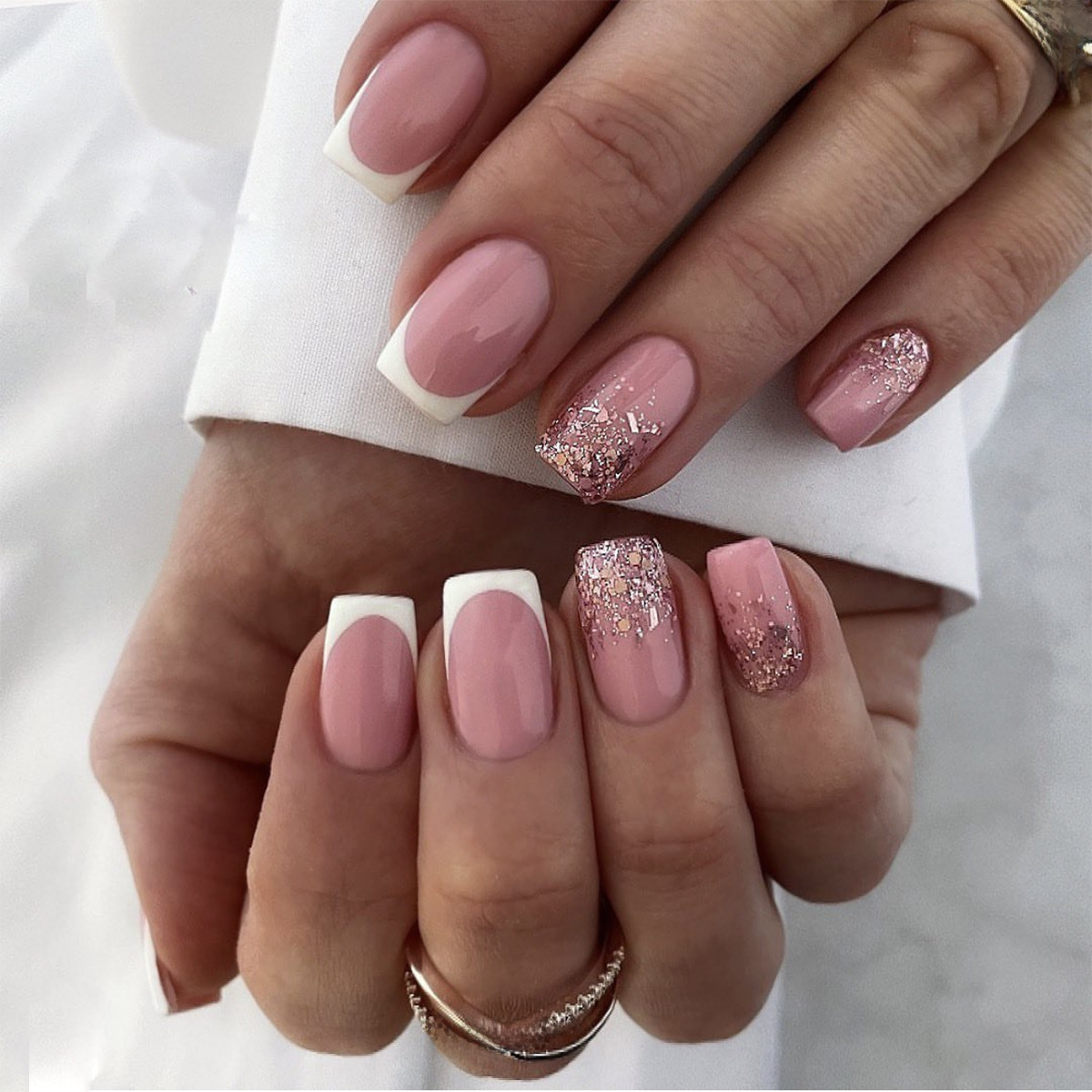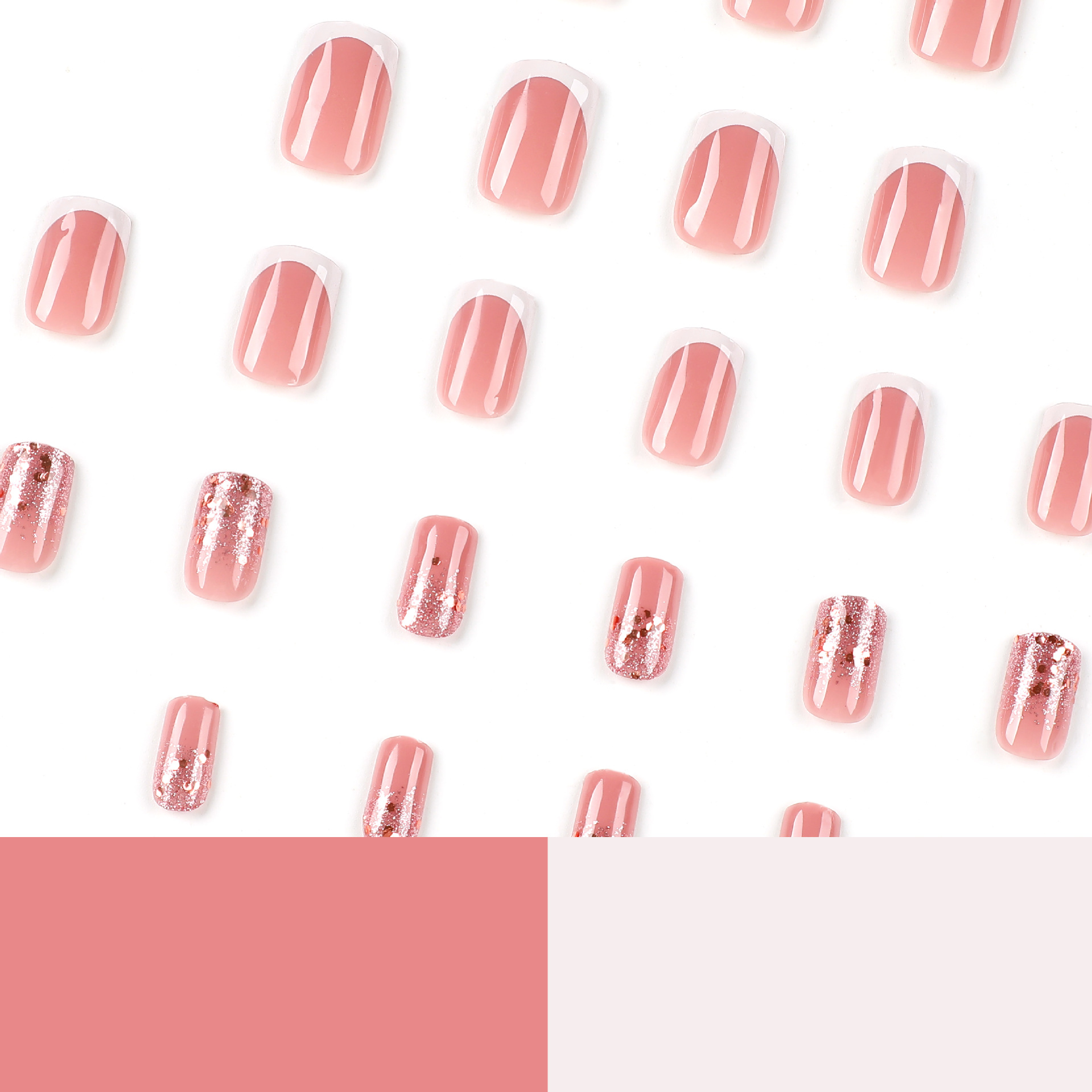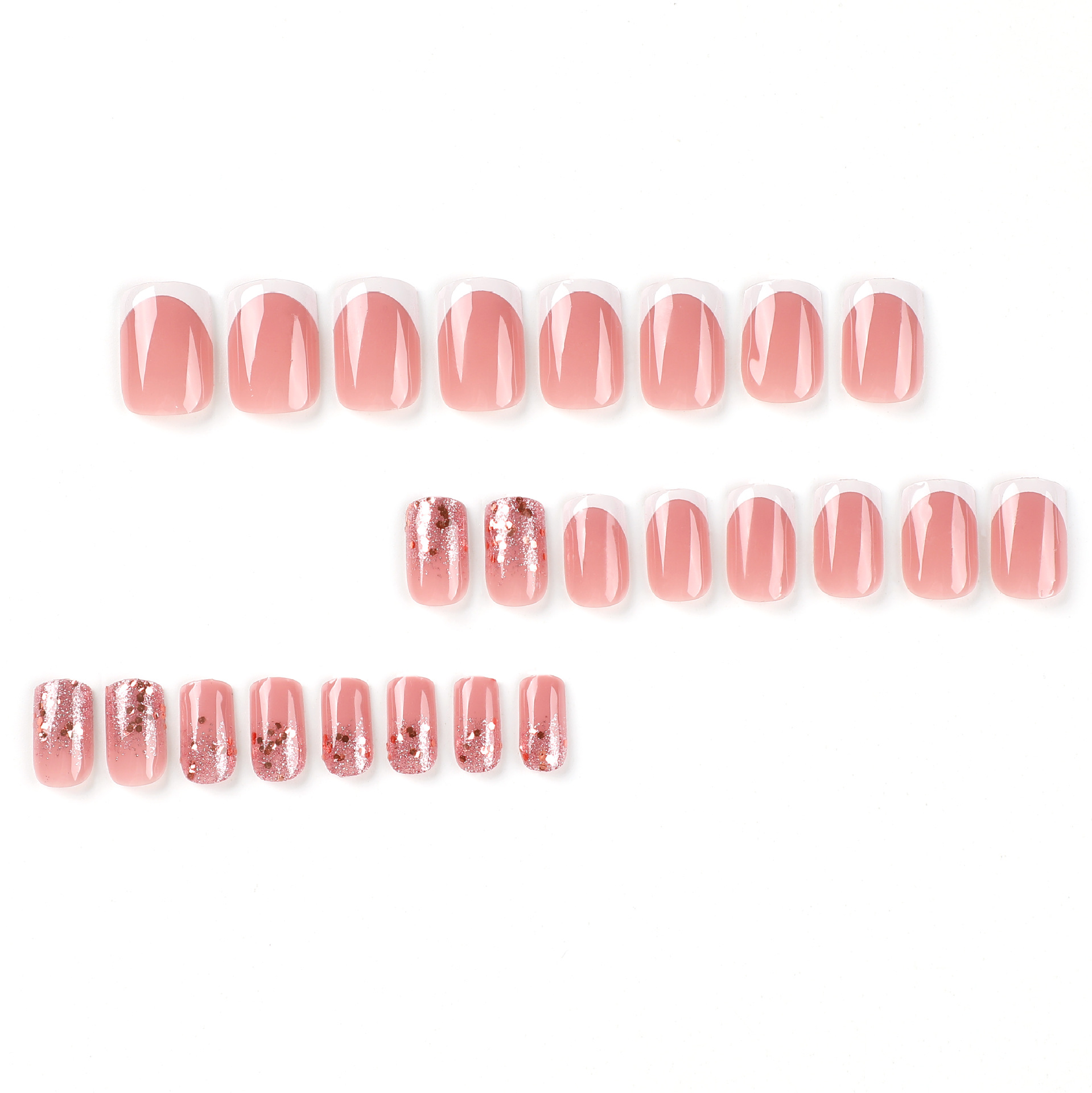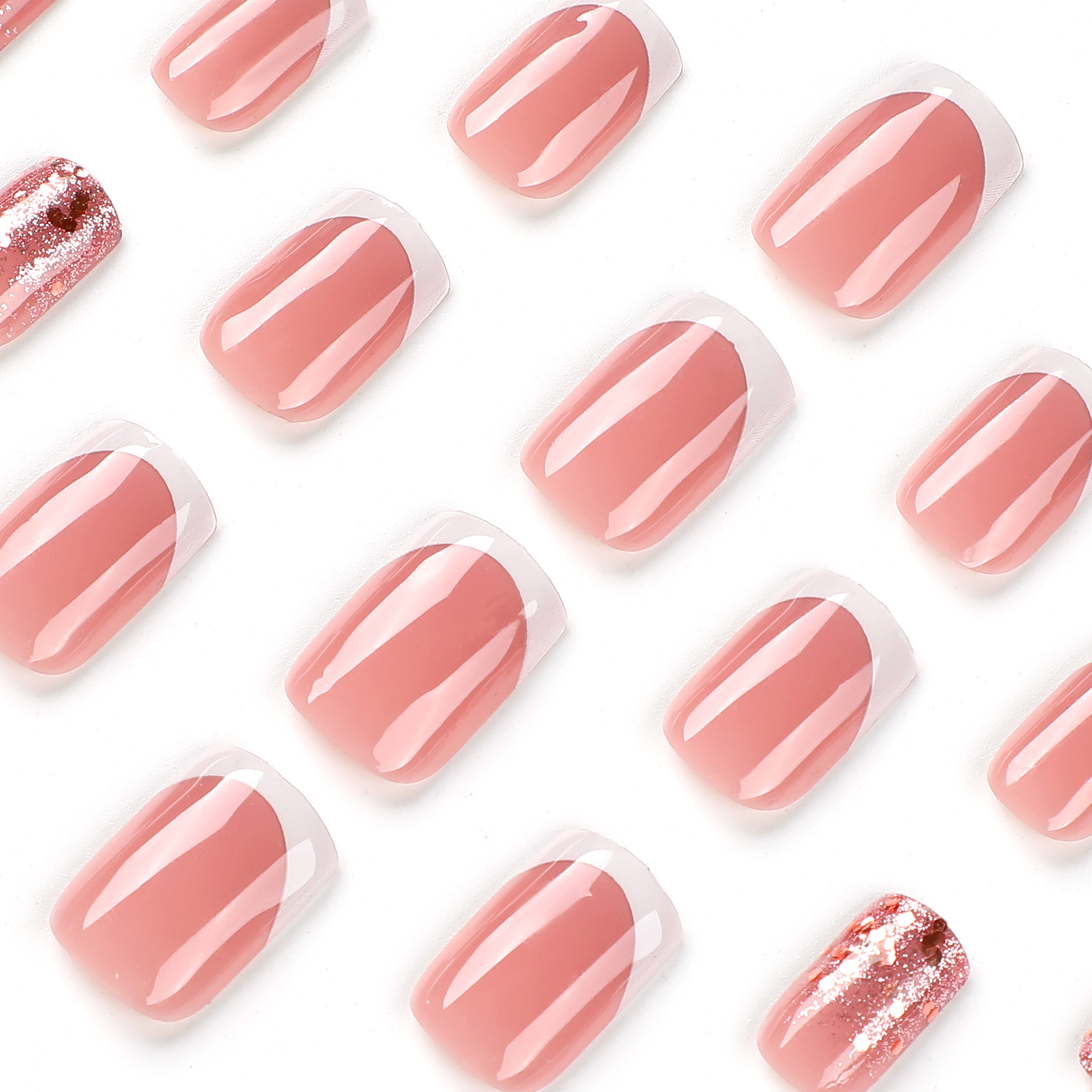 穿戴甲白色法式闪粉亮片美甲片美甲成品假指甲可拆卸成品指甲贴片 수량