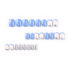 穿戴甲短款甲片蓝白撞色美甲片蓝色法式银色闪粉假甲片可穿戴甲片 수량