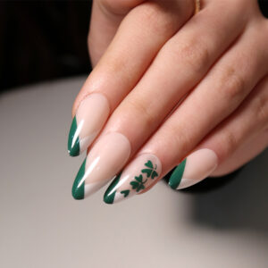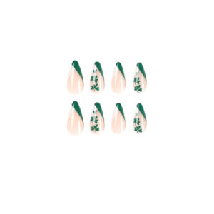 / 손톱 도매 성 패트릭의 날 매니큐어 녹색 프렌치 사이드 스타일 네 잎 클로버 손톱을 착용 손톱에 누릅니다.
