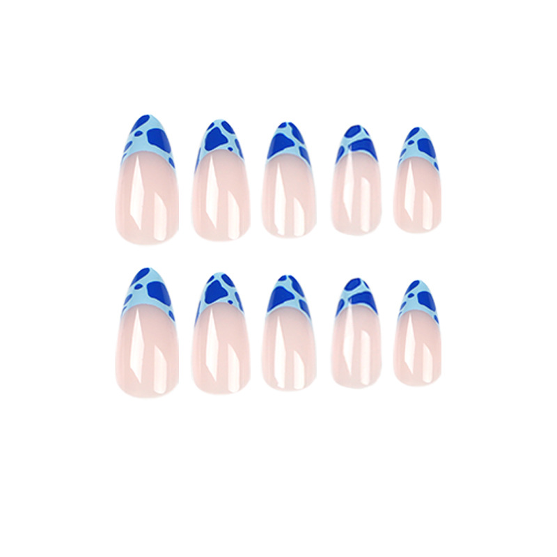 / 네일 아트 네일 패치 도매 블루 프렌치 레오파드 프린트 웨어러블 네일 탈착식 네일 패치 손톱에 누르기