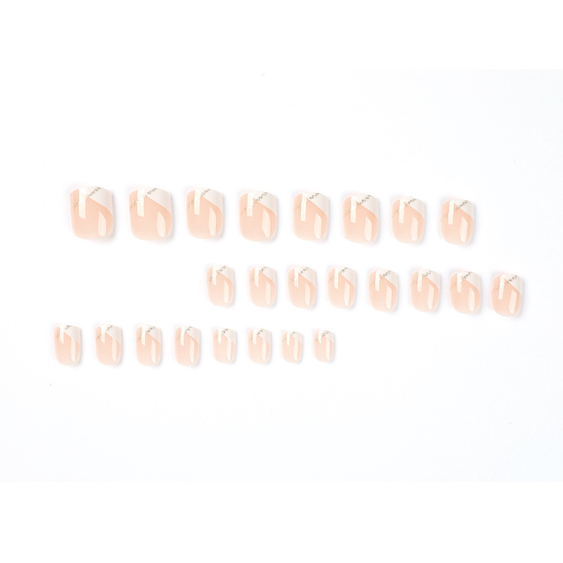 / 美甲穿戴甲批发短款斜边白色法式金线指甲贴片批发假指甲贴片批发