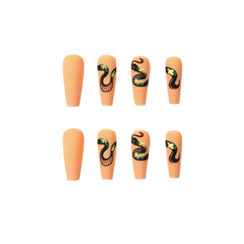 美甲穿戴甲批发磨砂长芭蕾蛇形小花穿戴式美甲批发press on nails 수량