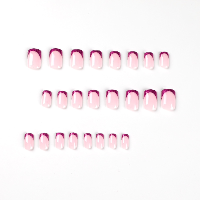 美甲贴片闪粉紫色法式边美甲贴片穿戴甲批发美甲片成品可拆卸高级 수량