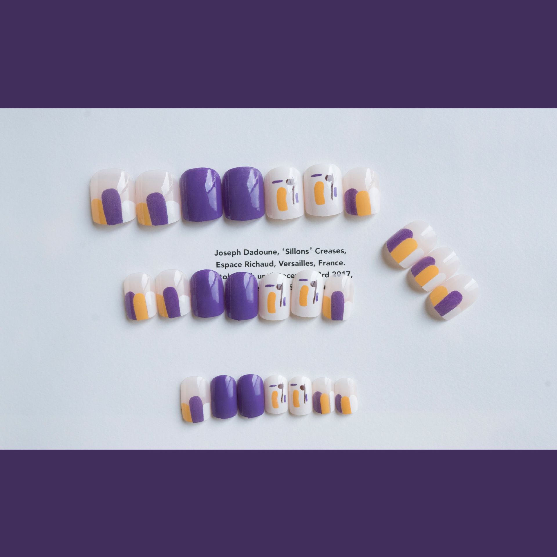 / 芋泥布丁藤紫涂鸦撞色穿戴甲成品假指甲美甲贴片指甲贴片地摊货源