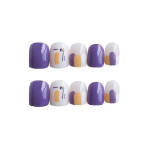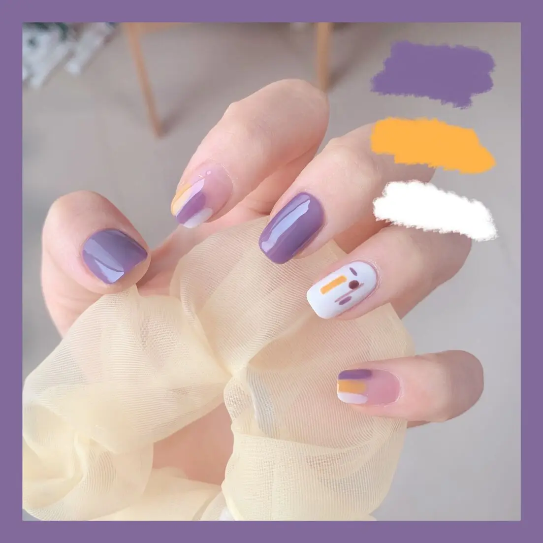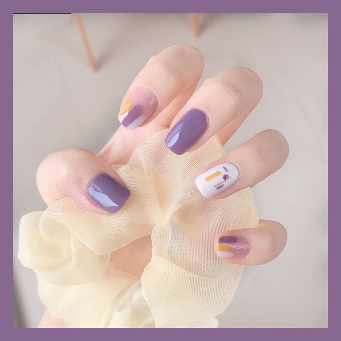 芋泥布丁藤紫涂鸦撞色穿戴甲成品假指甲美甲贴片指甲贴片地摊货源 수량