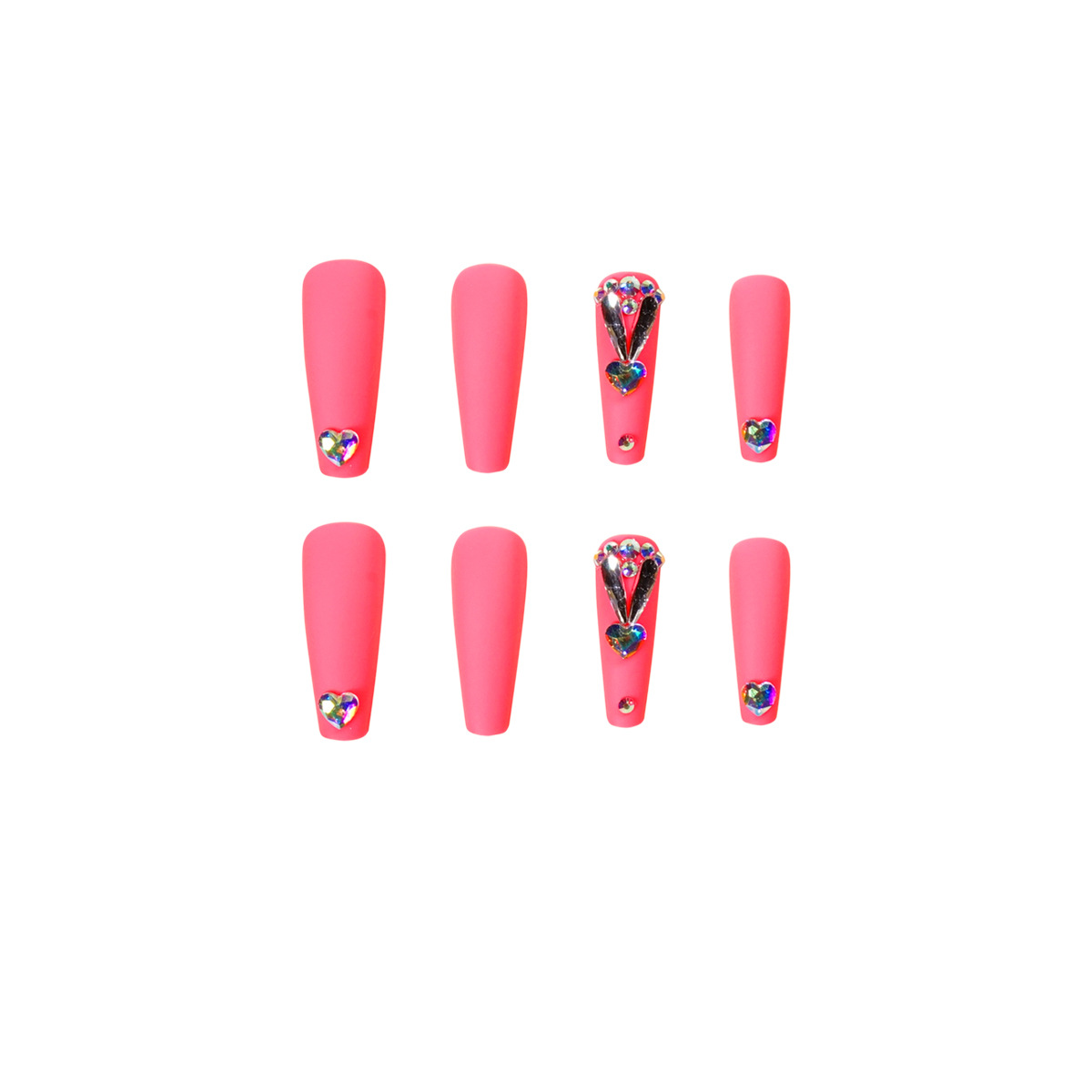 / 荧光桃红Lovly兔穿戴美甲成品假指甲美甲贴片指甲贴片跨境直供