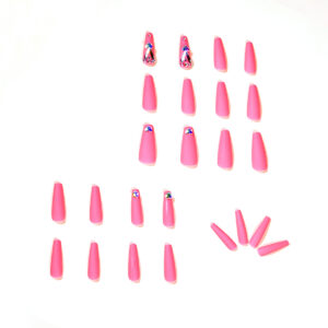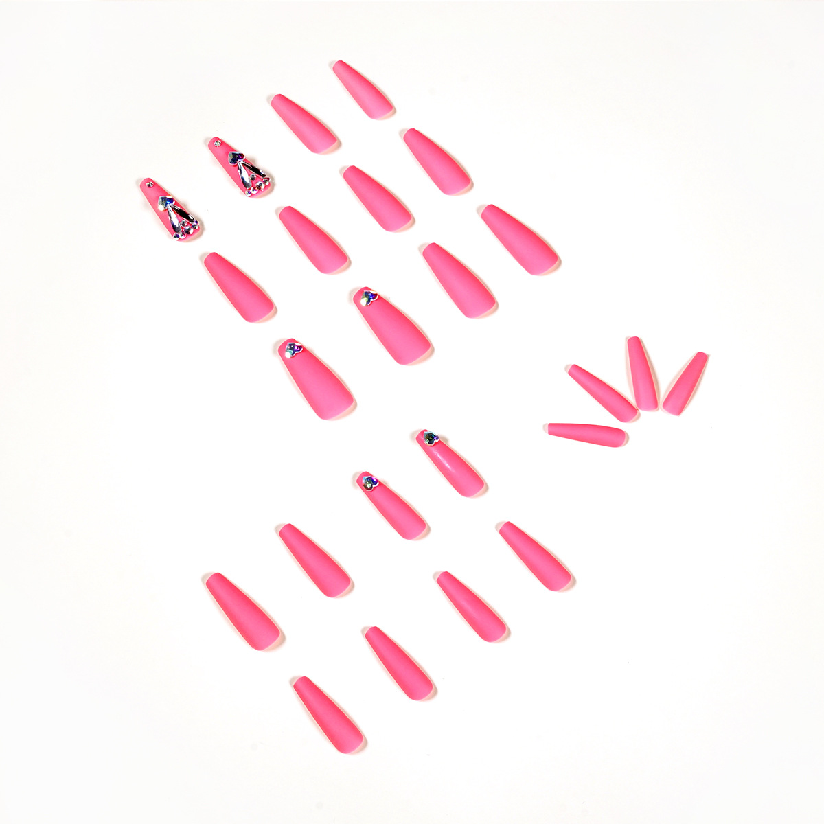 荧光桃红Lovly兔穿戴美甲成品假指甲美甲贴片指甲贴片跨境直供
