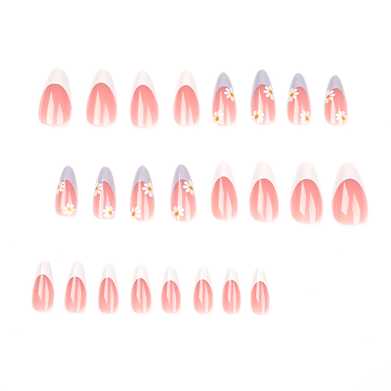 파란색과 흰색 프랑스 작은 꽃 착용 네일 네일 패치 착용 네일 도매 네일 패치 착용 네일 패치 착용 네일 아트