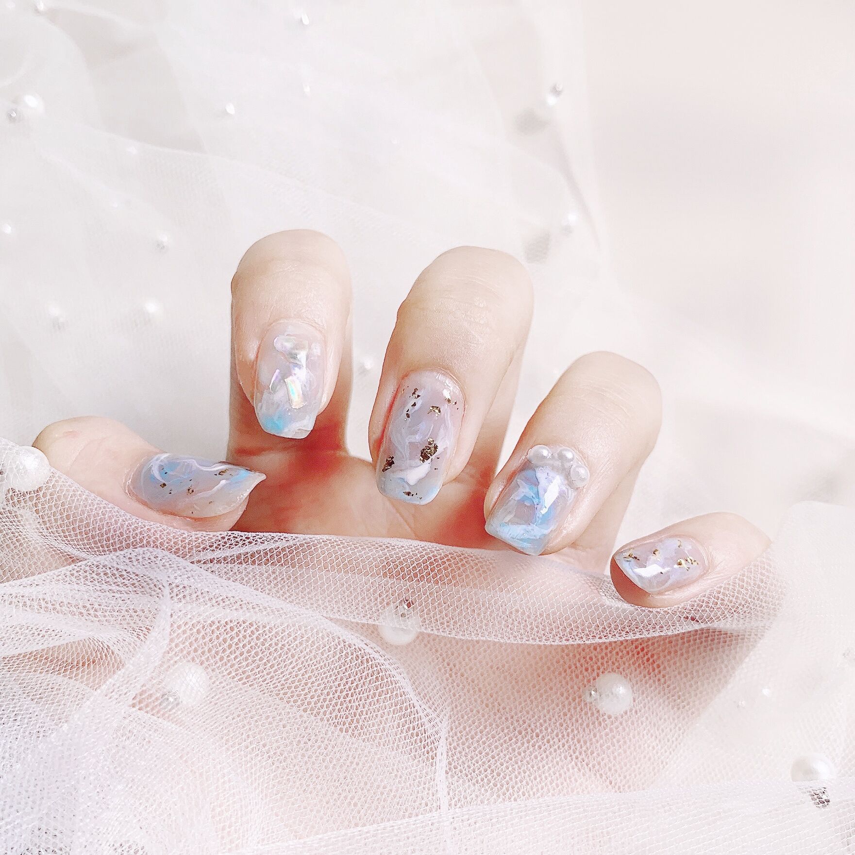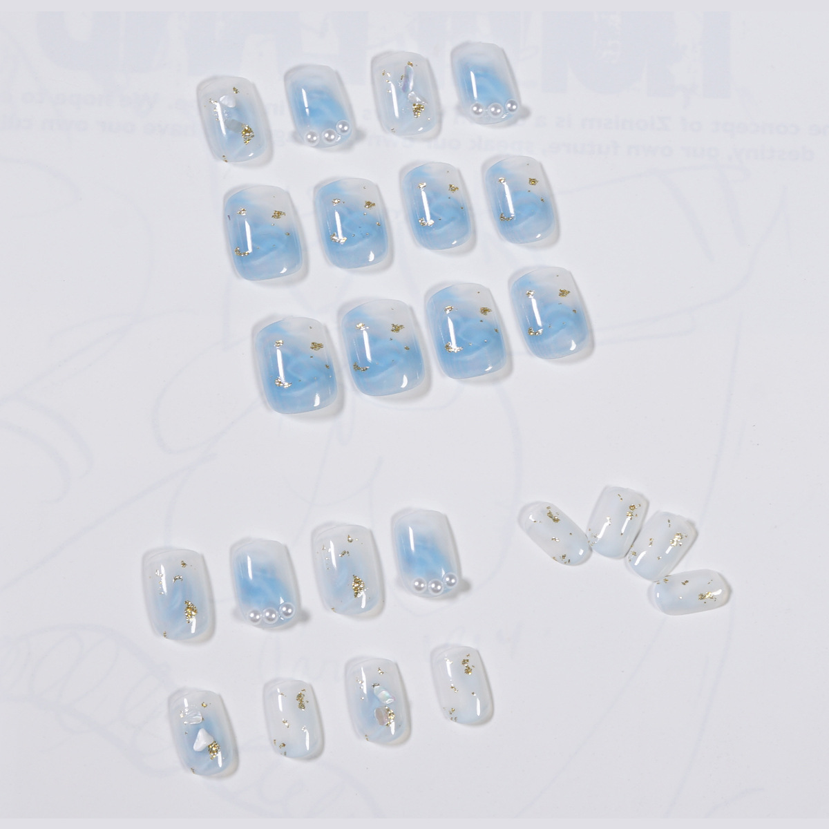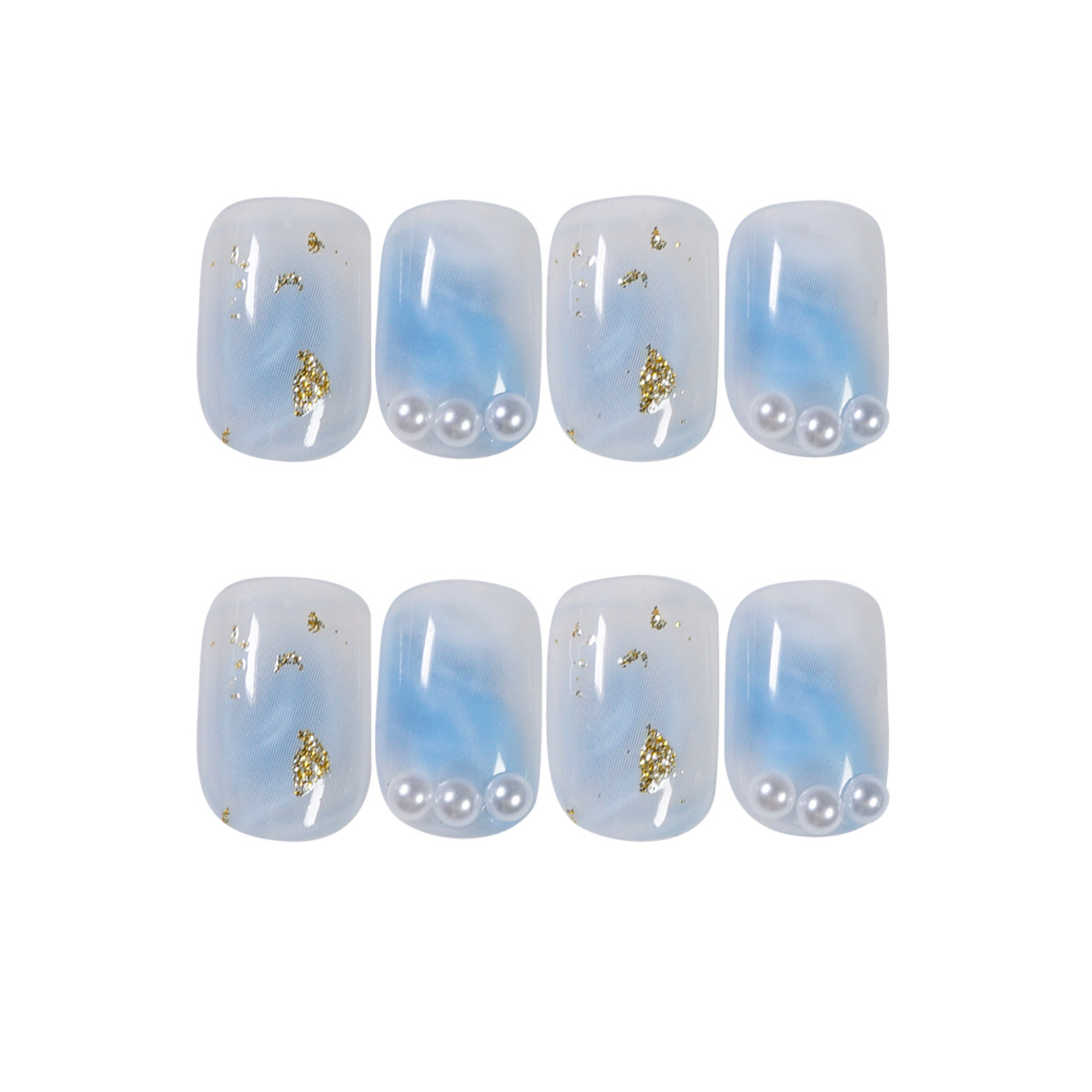 / 蓝色海洋贝壳珍珠穿戴美甲成品假指甲美甲贴片指甲贴片防水可拆卸