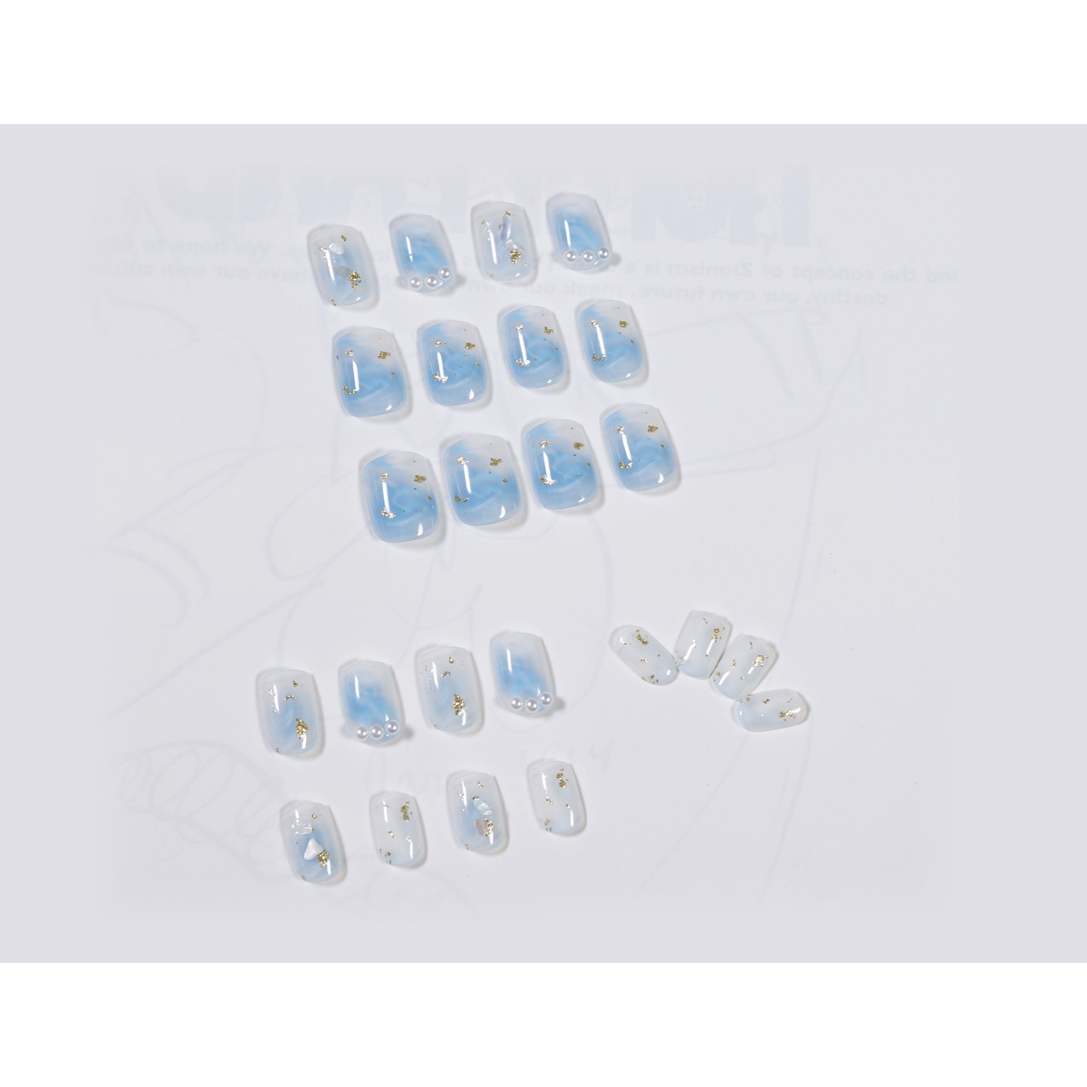 蓝色海洋贝壳珍珠穿戴美甲成品假指甲美甲贴片指甲贴片防水可拆卸 수량