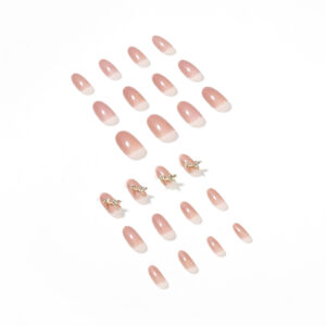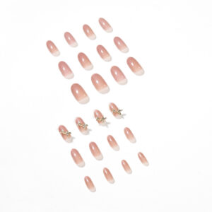 裸色双蝴蝶穿戴美甲成品假指甲美甲贴片指甲贴片可卸甲片厂家直销 수량