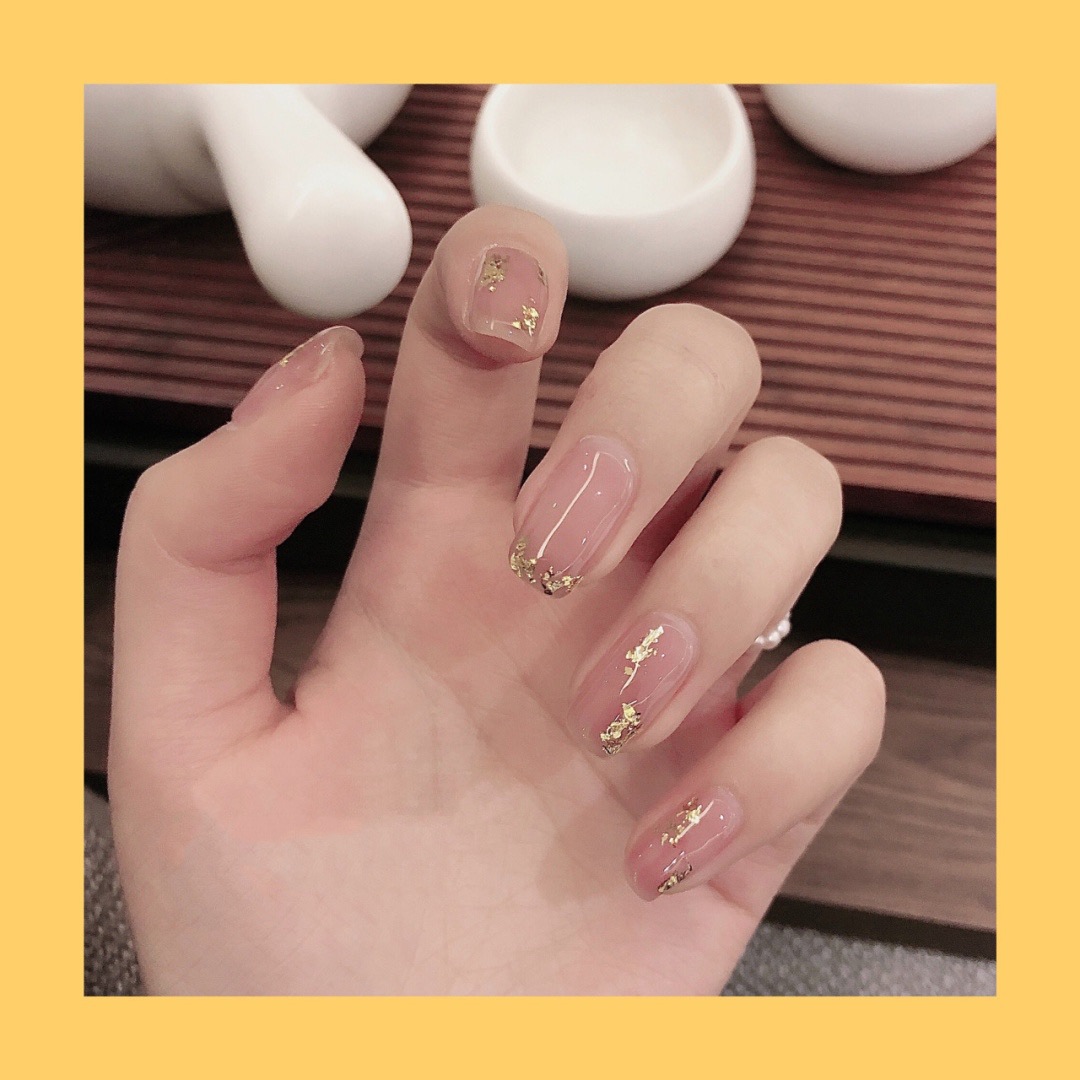 裸色透温柔金箔穿戴甲成品美甲贴片假指甲指甲贴片美甲片防水可拆 수량