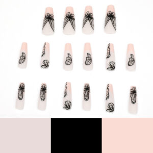 裸色长芭蕾黑色蝴蝶穿戴式美甲批发美甲甲片美甲贴片 false nail