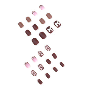 豹纹珍珠蝴蝶结穿戴甲甲片指甲贴可拆卸甲片美甲穿戴甲甲片成品豹纹珍珠蝴蝶结穿戴甲甲片指甲贴可拆卸甲片美甲穿戴甲甲片成品