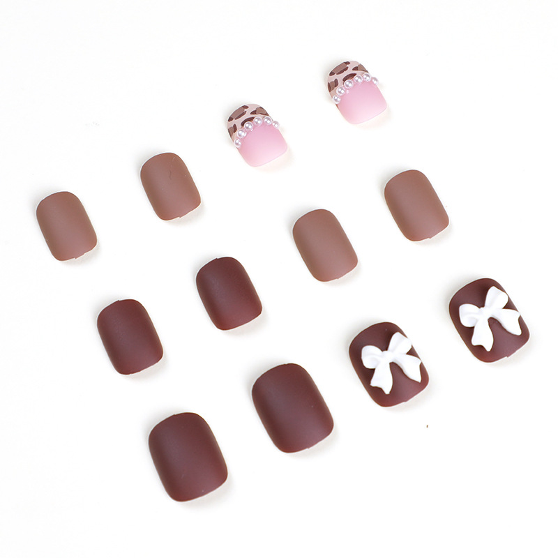 豹纹珍珠蝴蝶结穿戴甲甲片指甲贴可拆卸甲片美甲穿戴甲甲片成品