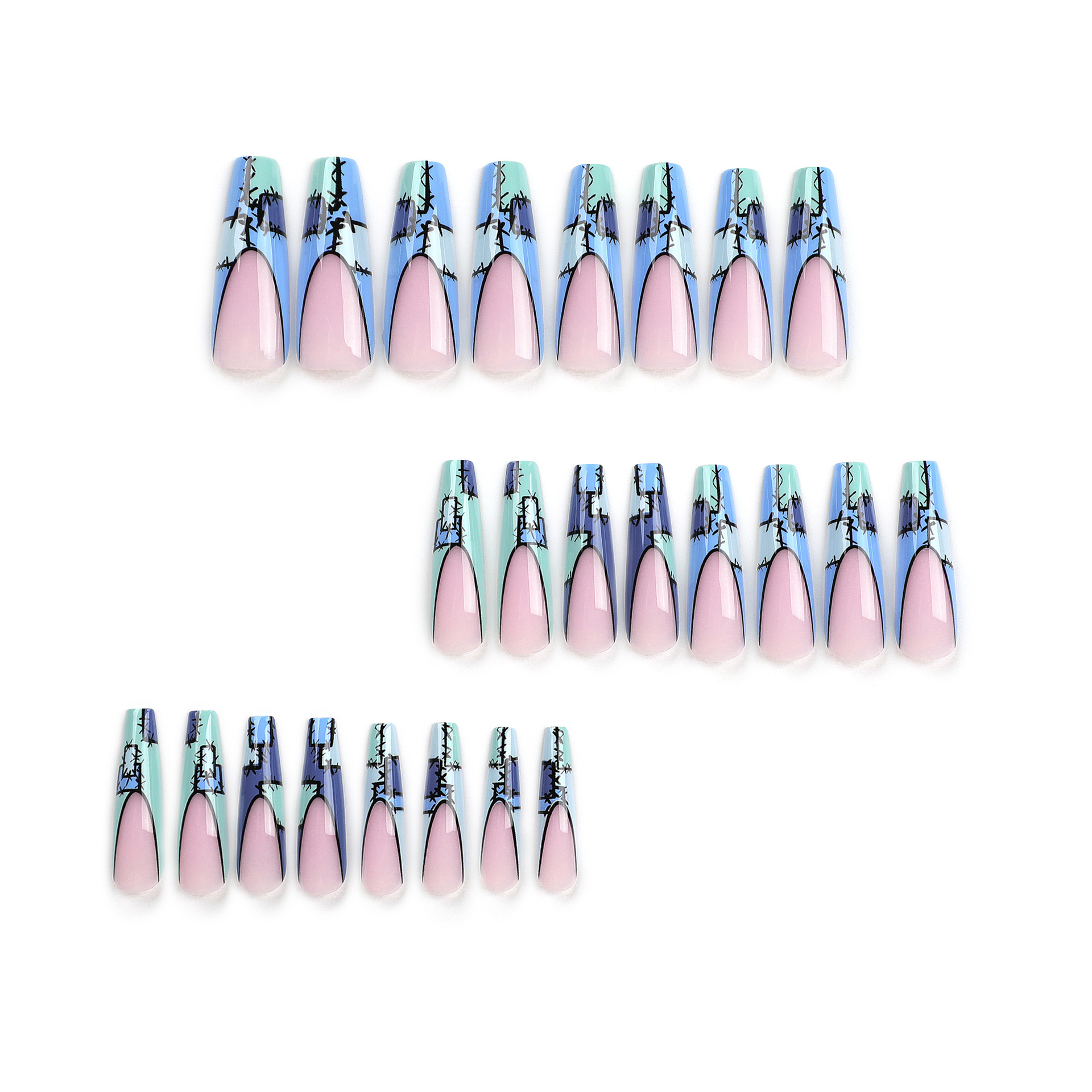 / 超长法式芭蕾穿戴甲冷色系缝补拼接美甲甲片欧美指甲片假指甲批发