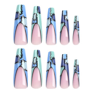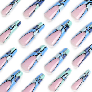 超长法式芭蕾穿戴甲冷色系缝补拼接美甲甲片欧美指甲片假指甲批发