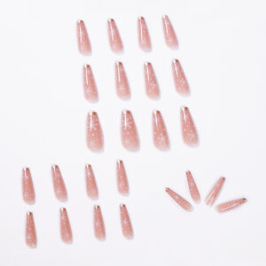 / 跨境专供长芭蕾裸色法式穿戴美甲成品可拆卸假指甲美甲贴片指甲片