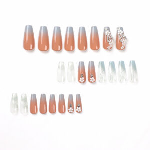/ 跨境外贸美甲穿戴甲片渐变假指甲指甲贴美甲片蝴蝶花朵穿戴甲批发