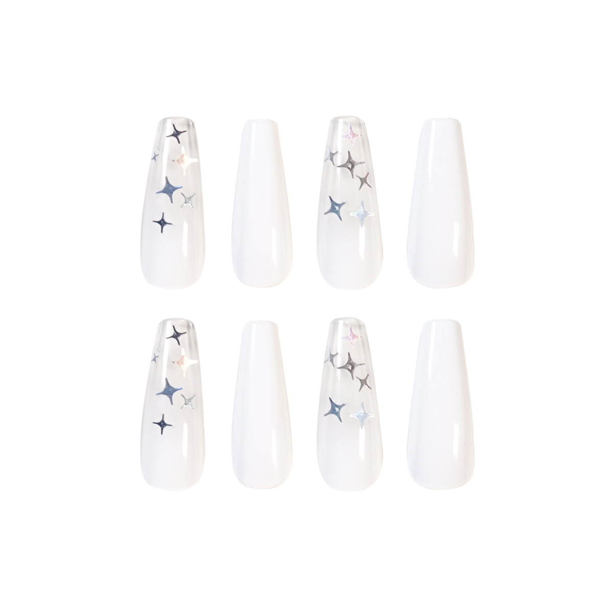 / 长芭蕾渐变镭射星穿戴美甲美甲贴片指甲贴片防水可拆卸甲片假指甲