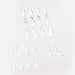 긴 발레 네일 조각 진주 화이트 가짜 손톱 블루 그라데이션 스팽글 반짝이 다이아몬드 착용 손톱 가을과 겨울 미백 네일 조각