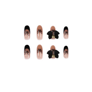 / 黑茶透色巴洛克暗黑蝴蝶穿戴甲成品假指甲美甲贴片指甲贴片可拆卸